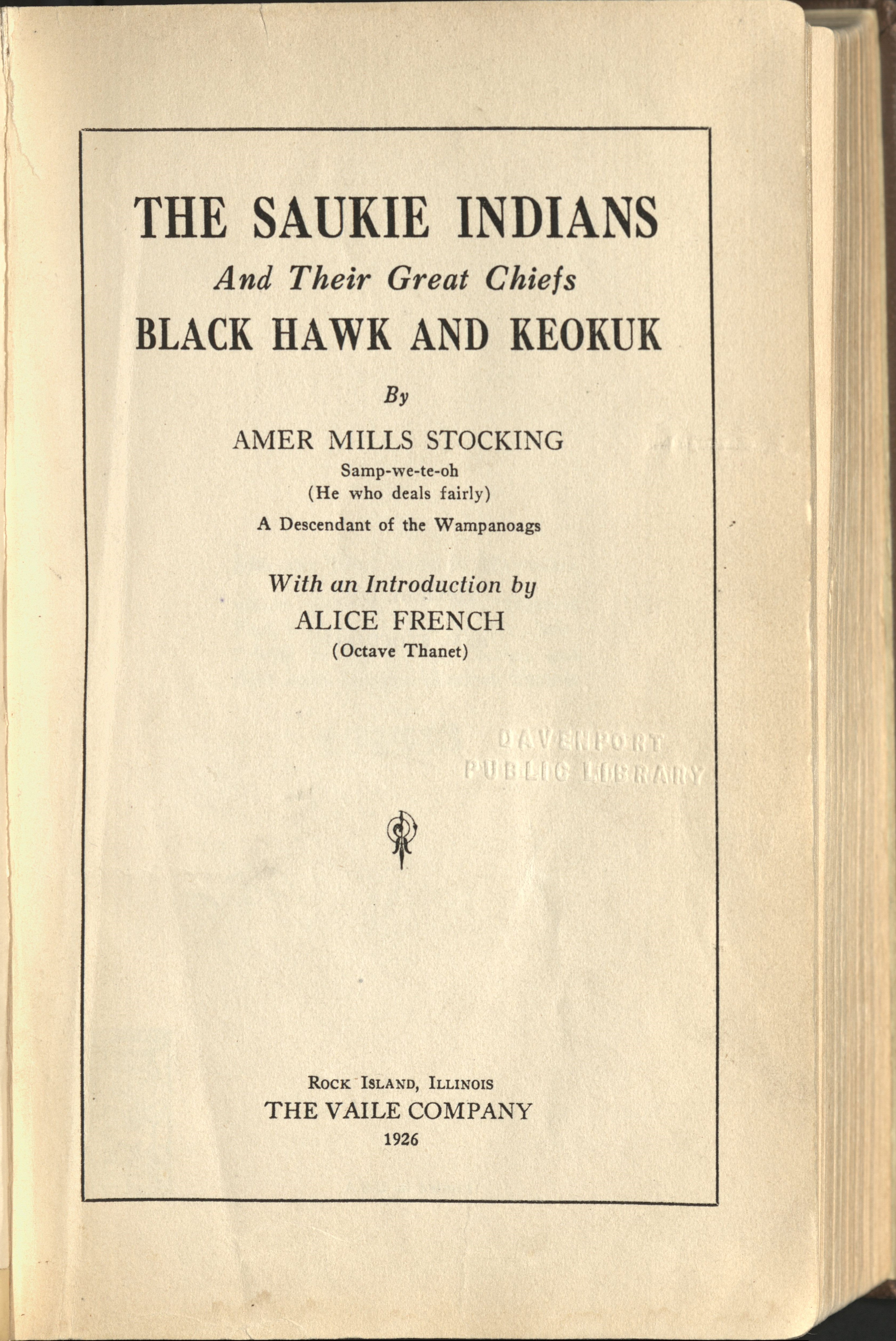 Title page “The Saukie Indians”